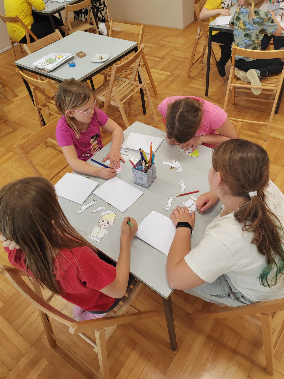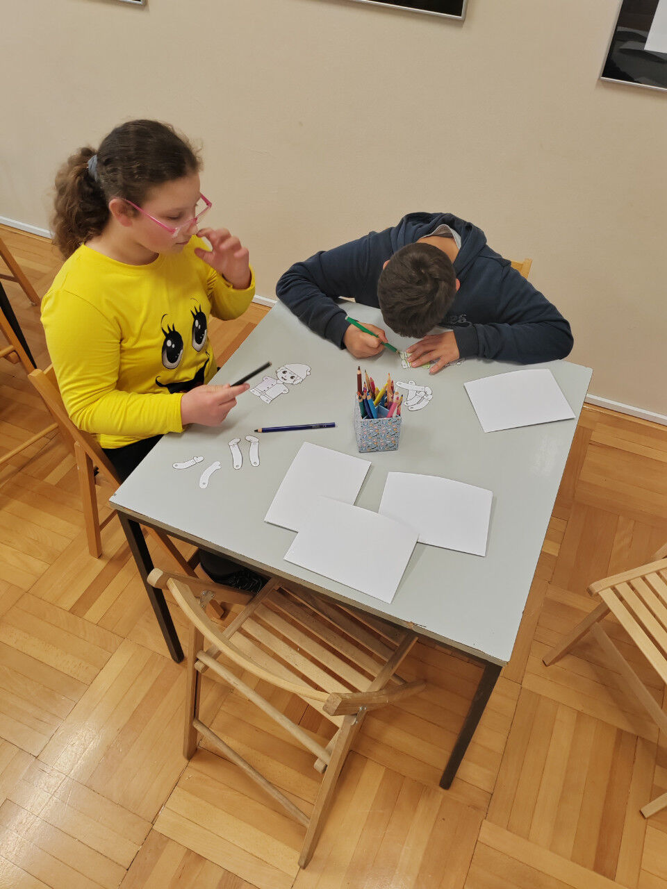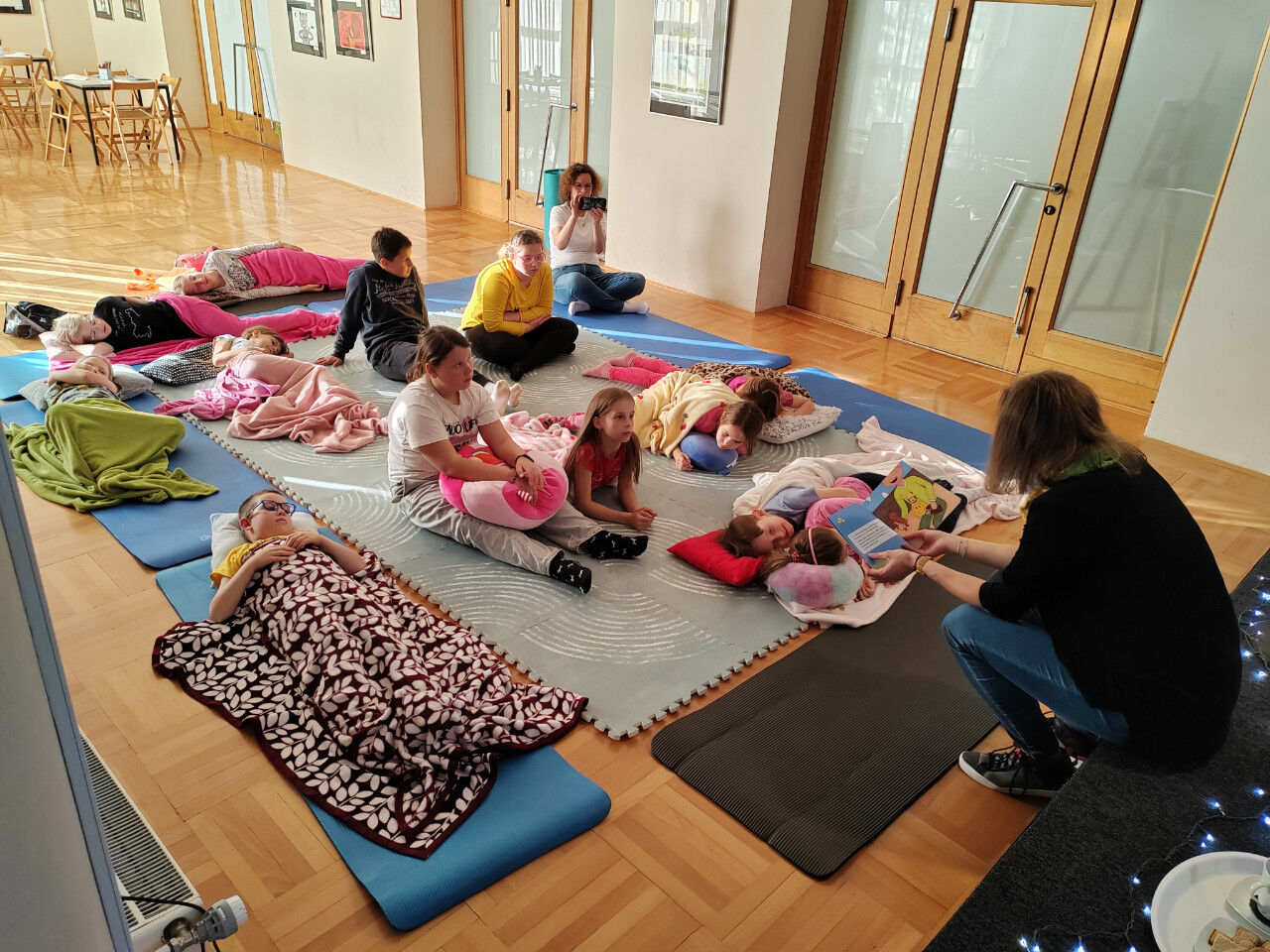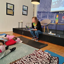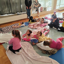 V prvem delu večera nas je obiskala Vesna Draginc, avtorica knjige Palček migetalček. Njeno delo bralce popelje k umirjanju in v deželo prijetnih sanj, kar so potrdili tudi naši najmlajši – nekateri so ob poslušanju pravljice celo zaspali. Po sproščujočem pripovedovanju so si otroci izdelali vsak svojega palčka, ki jih bo ob večerih spremljal v svet sanj.
